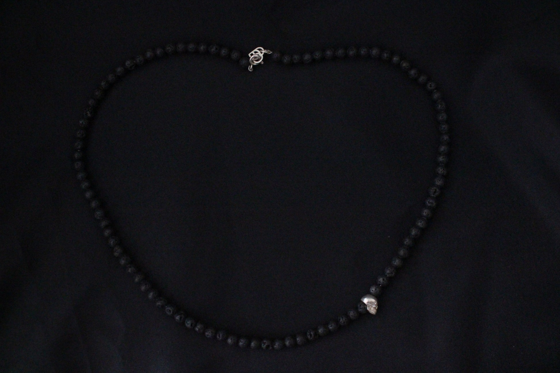 Black lava beads are complemented by a 950 silver skull and our signature LYOS logo clasp