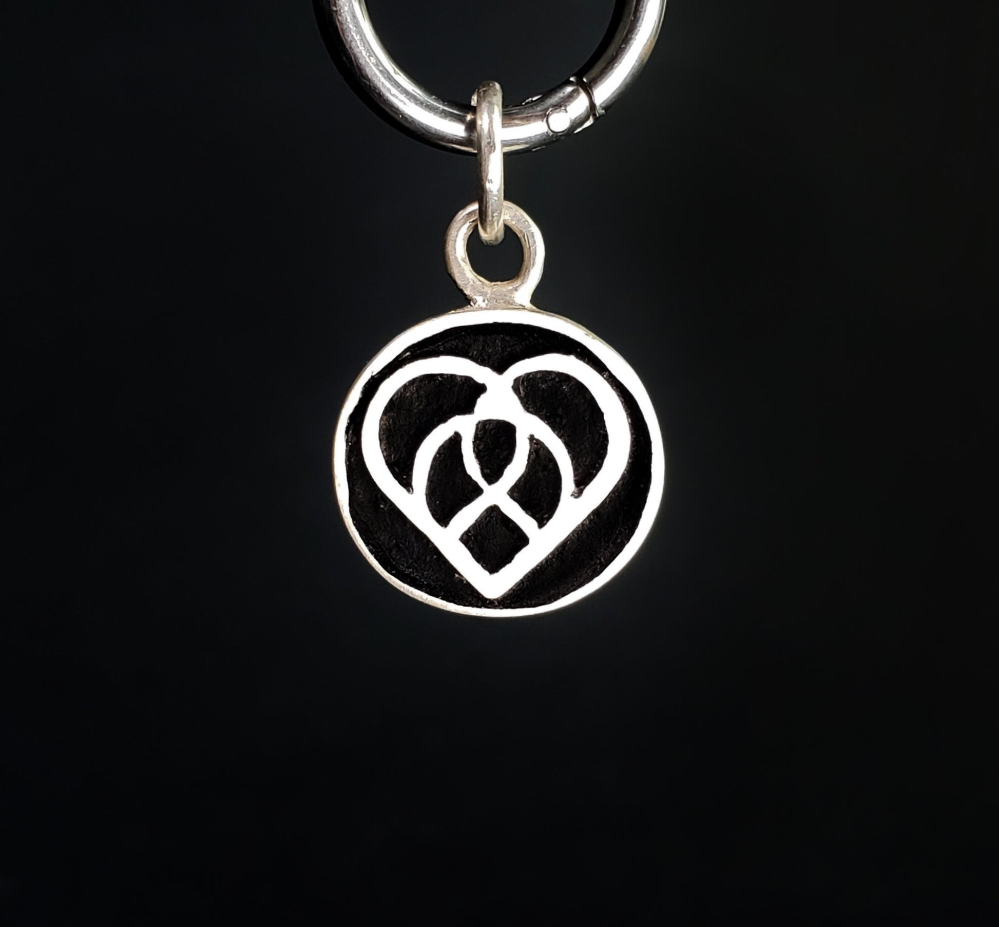The pendant is made from 950 Sterling Silver with a brushed matt finish, the loop earring is grey surgical steel
